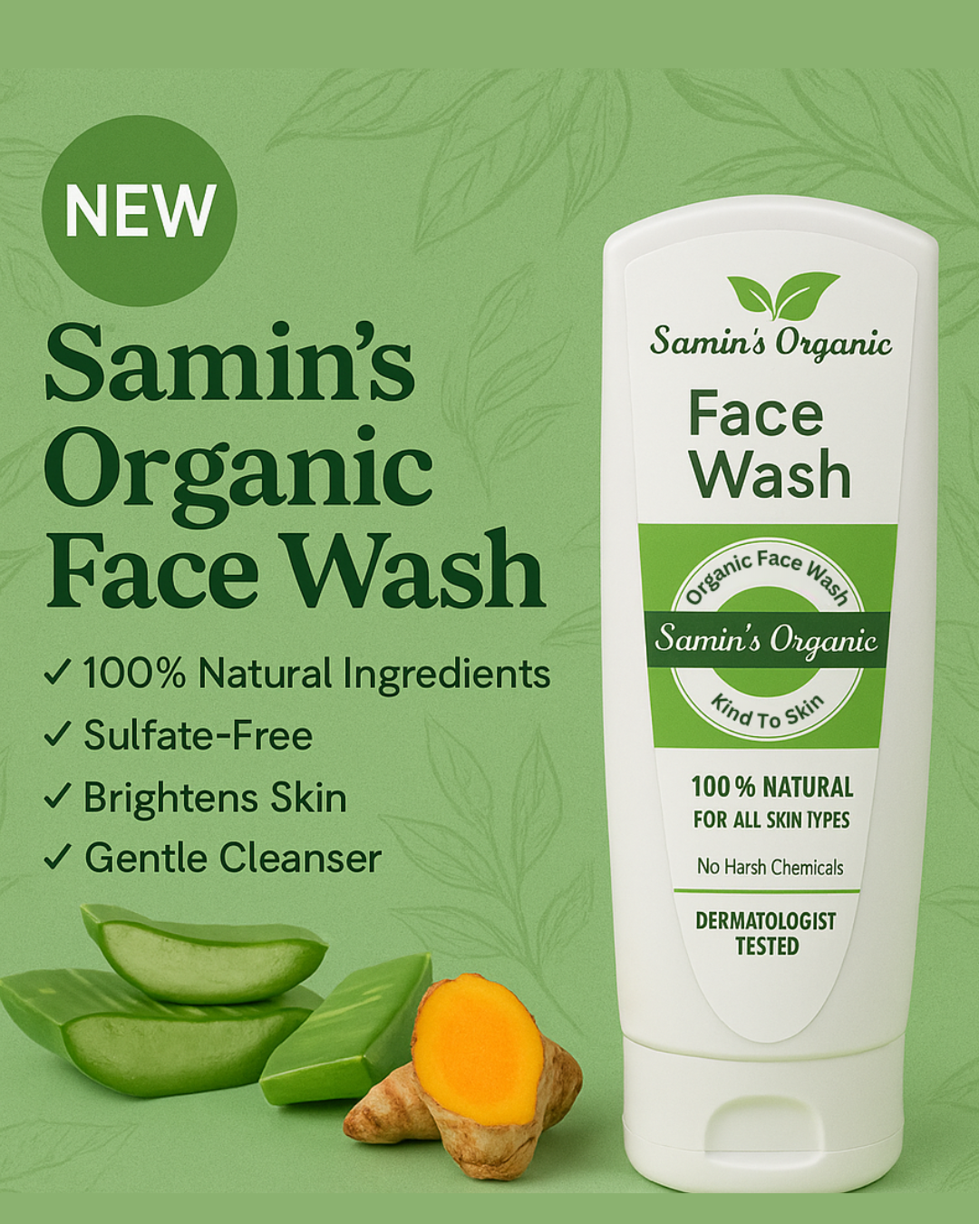 Say hello to naturally glowing skin with Samin’s Organic Face Wash — a 100% natural and dermatologist-tested formula designed for smooth, healthy-looking skin. Packed with the goodness of 20+ organic ingredients like chicory, clove, carom seeds, pumpkin seeds, black sesame seeds, green tea, and premium dry fruits — this face wash gently cleanses, soothes, and nourishes your skin the natural way.